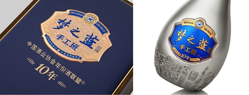 夢(mèng)之藍(lán)手工班是首家獲得“中國(guó)酒業(yè)協(xié)會(huì)”授權(quán)、由第三方認(rèn)證機(jī)構(gòu)“方圓標(biāo)志認(rèn)證集團(tuán)有限公司”權(quán)威認(rèn)證的中國(guó)高端年份白酒。其中,夢(mèng)之藍(lán)手工班(10年)延續(xù)了手工班系列的經(jīng)典風(fēng)格,瓶身選用青槍色為主體色調(diào),展現(xiàn)產(chǎn)品渾厚內(nèi)斂的品質(zhì)內(nèi)涵,寓意手工釀造的時(shí)間積淀與工藝傳承。外盒正面延續(xù)經(jīng)典活字印刷元素,展現(xiàn)手工之美;局部細(xì)節(jié)精致打造郵票造型,體現(xiàn)產(chǎn)品珍貴紀(jì)念感;側(cè)面用木紋材質(zhì)年輪交疊中時(shí)光流轉(zhuǎn),呼應(yīng)老酒老窖的年份賣(mài)點(diǎn)。