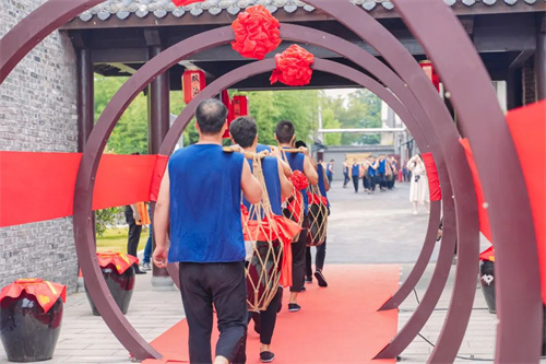 “一聲鼓響,風(fēng)調(diào)雨順!二聲鼓響,美酒天成!三聲鼓響,萬窖齊開!吉時(shí)已到,開窖門!”中國釀酒大師、洋河股份總裁鐘雨,著名主持人、朗誦藝術(shù)家、中國文聯(lián)“終身成就電視藝術(shù)家” 陳鐸,中國釀酒大師、洋河股份總工程師周新虎和中央電視臺(tái)詩詞大會(huì)總顧問,清華大學(xué)、南京師范大學(xué)教授鐘振振敲響吉祥鼓,2023年洋河·雙溝頭排酒開窖儀式正式開始。