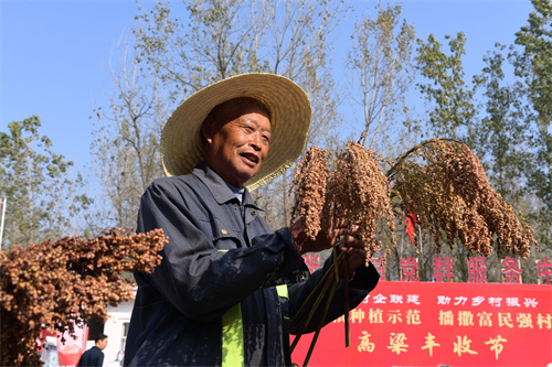 洋河股份攜手張渡村開展“打造原糧種植示范 播撒富民強村種子”高粱豐收節(jié)活動