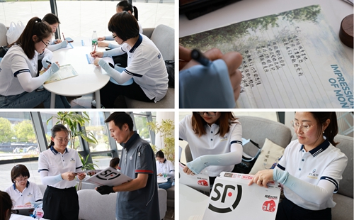 初夏的酒都公園涼風(fēng)習(xí)習(xí),酒史館前的大草坪,布置精美雅致,粉紅氣球與鮮花交相輝映,將儀式感拉滿,歡迎酒嫂的到來?!拔覑垩蠛印薄拔沂茄蠛泳粕?,我自豪”“愛上洋河,愛在洋河”“小家美滿,洋河大家越來越好”……酒嫂拍照留念記錄下最美好的時(shí)刻,并寫下對(duì)愛人、對(duì)家庭、對(duì)洋河最真摯的祝愿。
