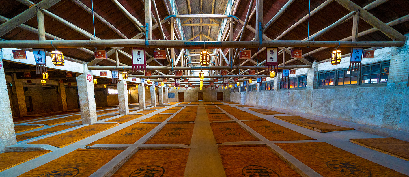 “跨”為目前中國白酒釀造場(chǎng)地特有表示單位,每跨約3000平方米。三十一連跨釀酒車間,是公司連跨數(shù)最多,產(chǎn)能最大的廠房,總長698米,寬133米,占地約9.3萬平方米,擁有窖池4340條。
